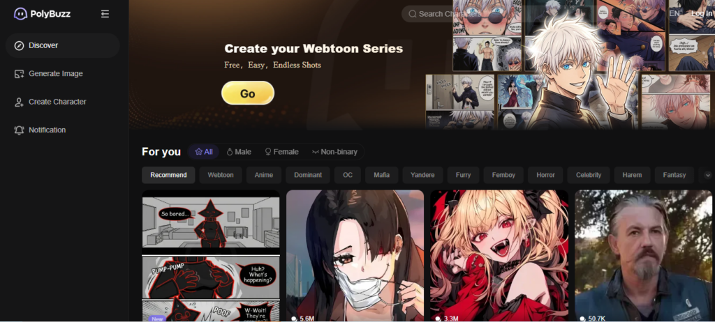 Polybuzz AIs are engaging and immersive by making it easy to move between simple chat sessions and engaging interactive stories in order to create a fully immersive experience. Polybuzz AIs offer a way to explore your creativity and imagination; however, depending on how the product is used, you may experience different levels of creativity and imagination.