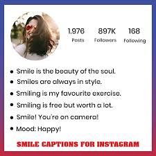 Using creative and attractive captions for selfies or smile-based Instagram pictures improves image expression and elicits an emotional response. In addition to other factors, the appropriate collection of captions will increase the traction and interaction on your posts.
