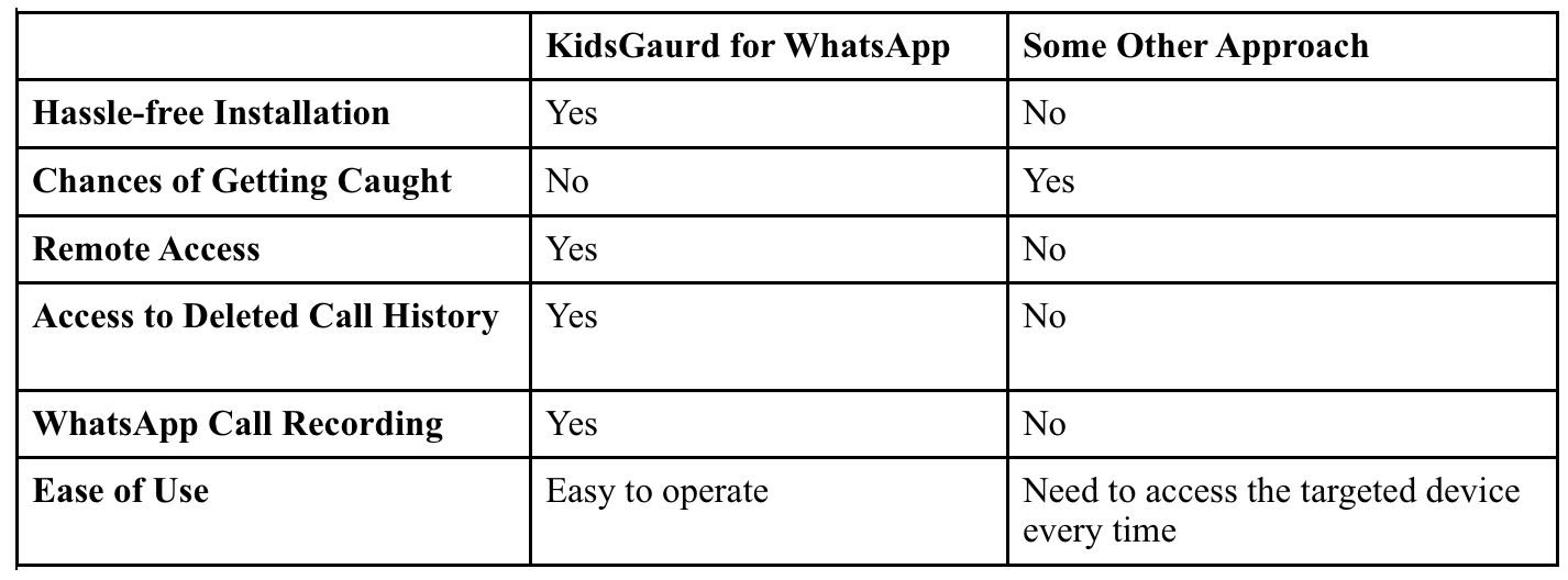 Maybe someone would say why not hire a hacker to check others’ WhatsApp call history? At this point, using the third-party tool is the most appropriate, considering the cost of hiring a hacker is too expensive, and they cannot help you get the target data in real-time. Besides, KidsGuard for WhatsApp monitoring solution that can get any targeted android device’s data secretly and is not technically complex.